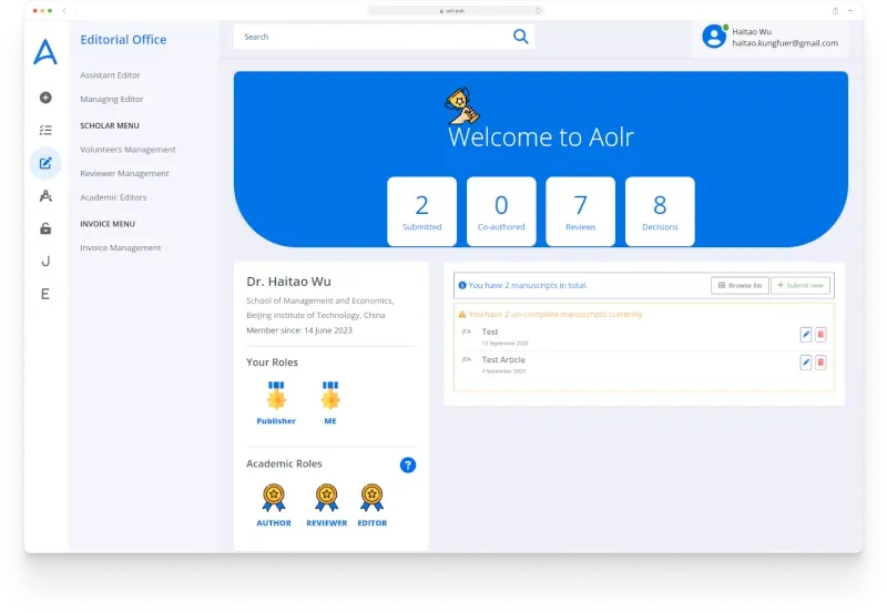 Aolr platform and services are intuitive and easy to use, optimizing workflows for editors, authors, and reviewers.