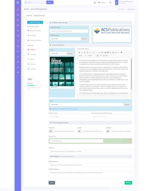 Aolr hosting platform comes with an intuitive journal website template your team can easily customize using our simple editing tool.